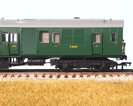 The quality of painting and graphics is also to a very high standard, but the shade of green used is questionable. In recent years Bachmann have been variable about their interpretation of BR(S) stock green. The shade of green used on their 4Ceps, 2EPBs and MLVs is by common agreement right but the darker shade of green on their most recent Mk1 and Bulleid coaches is just too dark and in no way accurate. Perversely these DEMU models are a third shade of green, slightly darker than on Bachmann EMUs - which they should really match - and mercifully significantly lighter than on Bachmann's most recent Mk1 and Bulleid coaches. Common agreement is that the shade of green on these models is just credible, any darker and it would not be. By the way, Bachmann's Mk1 and Bulleid coaches should match their EMUs too!